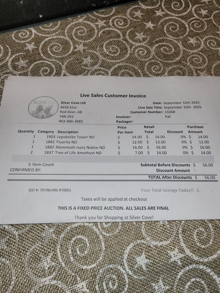 The total is already discounted with any sales you received, and you invoice is ready for check out. All you need to do is add it to your cart, along with any other items you would like to purchase and we will get your treasures on the way!