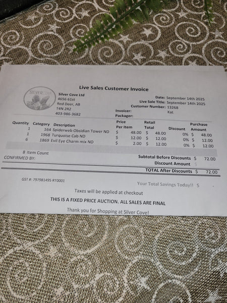 The total is already discounted with any sales you received, and you invoice is ready for check out. All you need to do is add it to your cart, along with any other items you would like to purchase and we will get your treasures on the way!