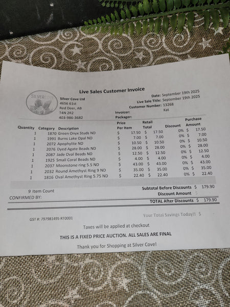 The total is already discounted with any sales you received, and you invoice is ready for check out. All you need to do is add it to your cart, along with any other items you would like to purchase and we will get your treasures on the way!