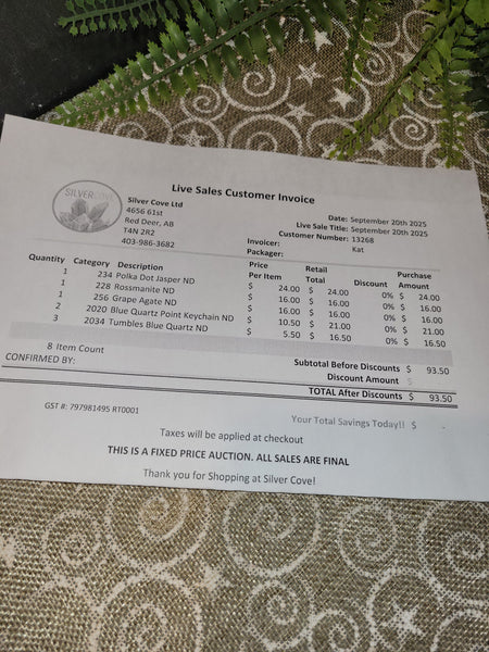 The total is already discounted with any sales you received, and you invoice is ready for check out. All you need to do is add it to your cart, along with any other items you would like to purchase and we will get your treasures on the way!