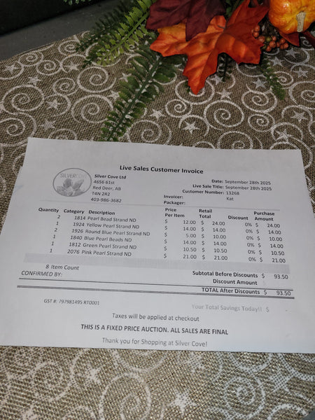 The total is already discounted with any sales you received, and you invoice is ready for check out. All you need to do is add it to your cart, along with any other items you would like to purchase and we will get your treasures on the way!