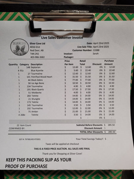 This is your invoice for the date listed above, and we hope you are as excited to get your items as we are! A photo of you invoice and your item(s) are included in this listing for you to review.