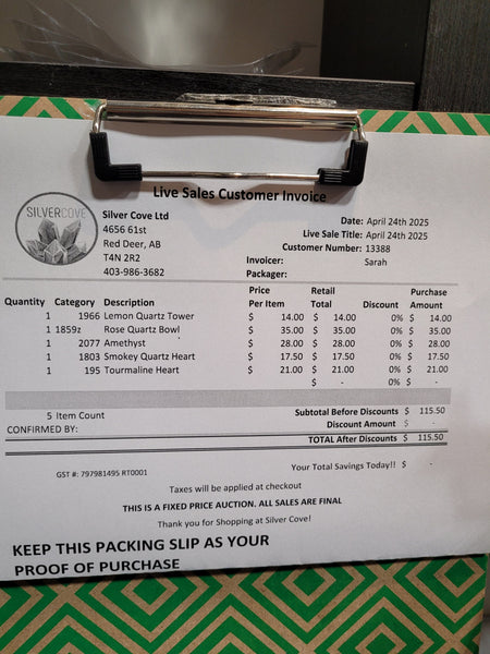 This is your invoice for the date listed above, and we hope you are as excited to get your items as we are! A photo of you invoice and your item(s) are included in this listing for you to review.