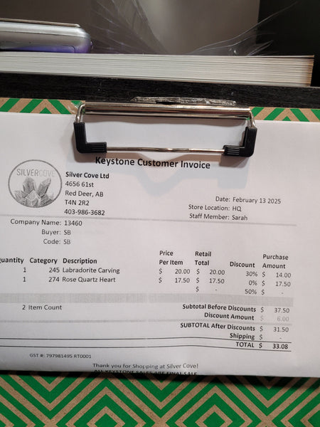 The total is already discounted with any sales you received, and you invoice is ready for check out. All you need to do is add it to your cart, along with any other items you would like to purchase and we will get your treasures on the way!