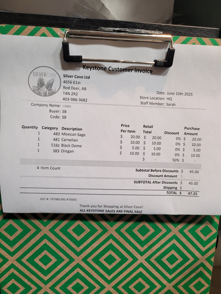 The total is already discounted with any sales you received, and you invoice is ready for check out. All you need to do is add it to your cart, along with any other items you would like to purchase and we will get your treasures on the way!