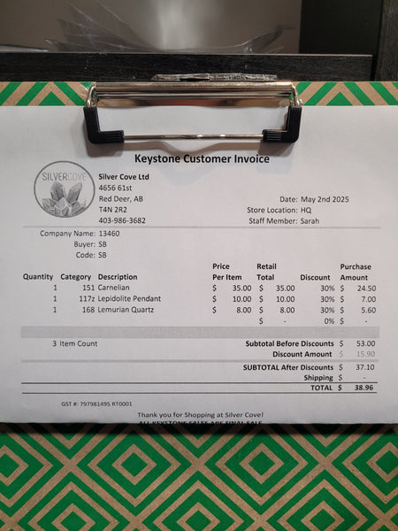 The total is already discounted with any sales you received, and you invoice is ready for check out. All you need to do is add it to your cart, along with any other items you would like to purchase and we will get your treasures on the way!