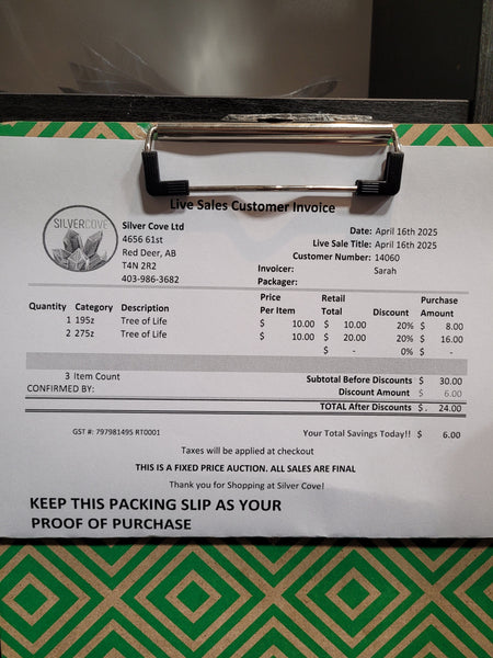 The total is already discounted with any sales you received, and you invoice is ready for check out. All you need to do is add it to your cart, along with any other items you would like to purchase and we will get your treasures on the way!
