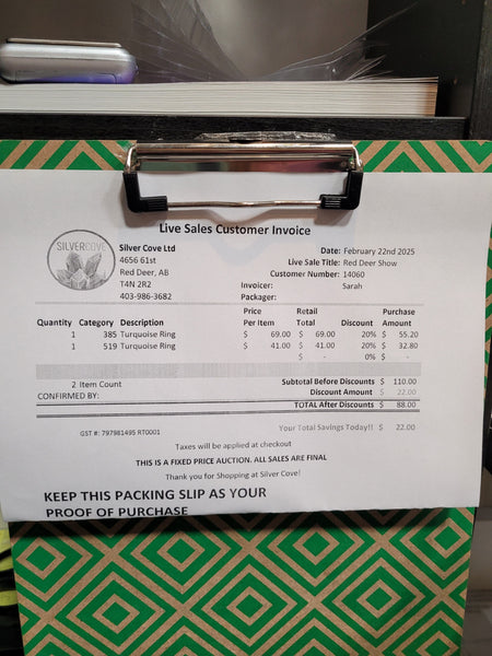 The total is already discounted with any sales you received, and you invoice is ready for check out. All you need to do is add it to your cart, along with any other items you would like to purchase and we will get your treasures on the way!