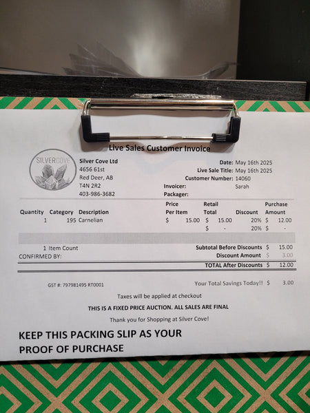 This is your invoice for the date listed above, and we hope you are as excited to get your items as we are! A photo of you invoice and your item(s) are included in this listing for you to review.