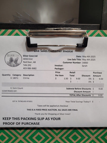 This is your invoice for the date listed above, and we hope you are as excited to get your items as we are! A photo of you invoice and your item(s) are included in this listing for you to review.