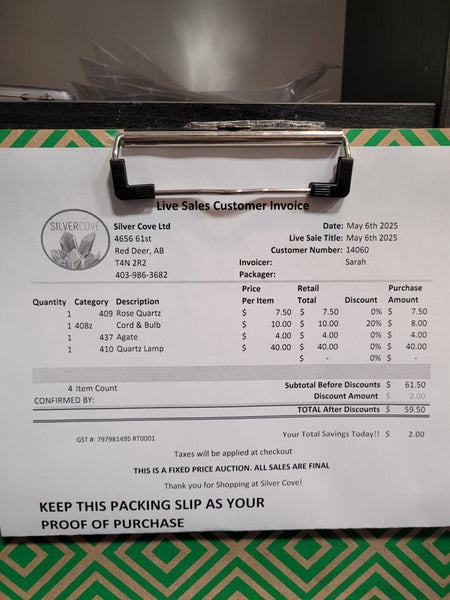 The total is already discounted with any sales you received, and you invoice is ready for check out. All you need to do is add it to your cart, along with any other items you would like to purchase and we will get your treasures on the way!