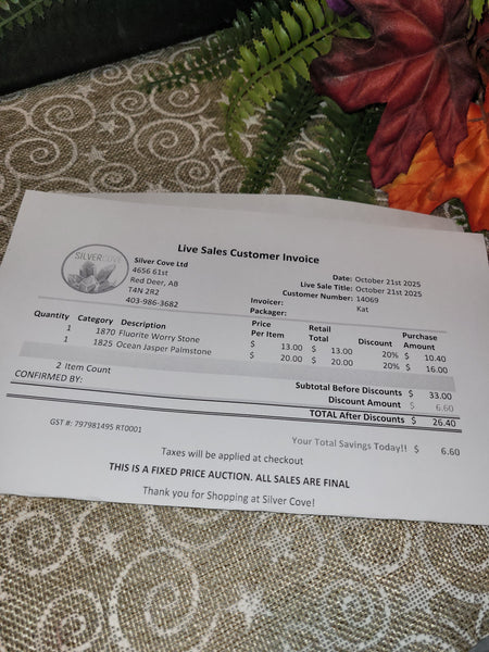 The total is already discounted with any sales you received, and you invoice is ready for check out. All you need to do is add it to your cart, along with any other items you would like to purchase and we will get your treasures on the way!