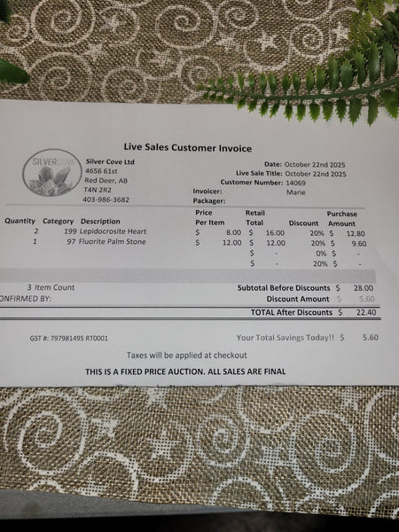 The total is already discounted with any sales you received, and you invoice is ready for check out. All you need to do is add it to your cart, along with any other items you would like to purchase and we will get your treasures on the way!