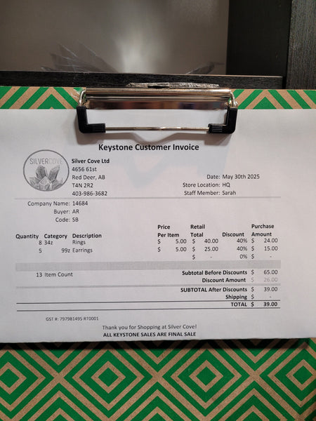 The total is already discounted with any sales you received, and you invoice is ready for check out. All you need to do is add it to your cart, along with any other items you would like to purchase and we will get your treasures on the way!