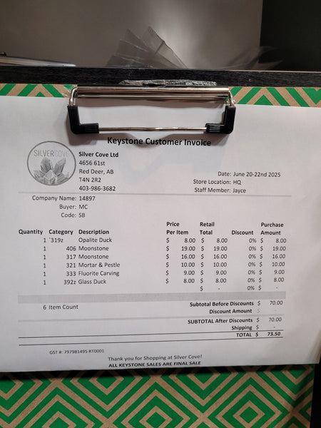 This is your invoice for the date listed above, and we hope you are as excited to get your items as we are! A photo of you invoice and your item(s) are included in this listing for you to review.