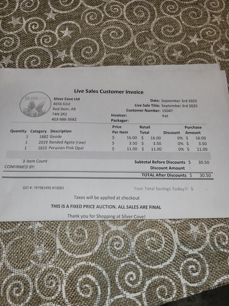 This is your invoice for the date listed above, and we hope you are as excited to get your items as we are! A photo of you invoice and your item(s) are included in this listing for you to review.