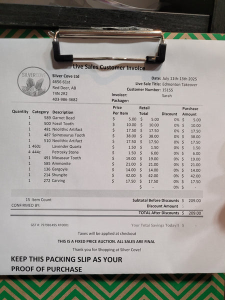 This is your invoice for the date listed above, and we hope you are as excited to get your items as we are! A photo of you invoice and your item(s) are included in this listing for you to review.