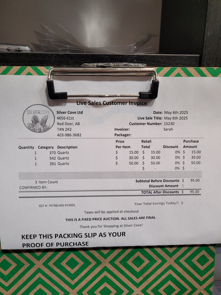 This is your invoice for the date listed above, and we hope you are as excited to get your items as we are! A photo of you invoice and your item(s) are included in this listing for you to review.