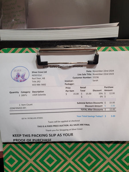 This is your invoice for the date listed above, and we hope you are as excited to get your items as we are! A photo of you invoice and your item(s) are included in this listing for you to review.