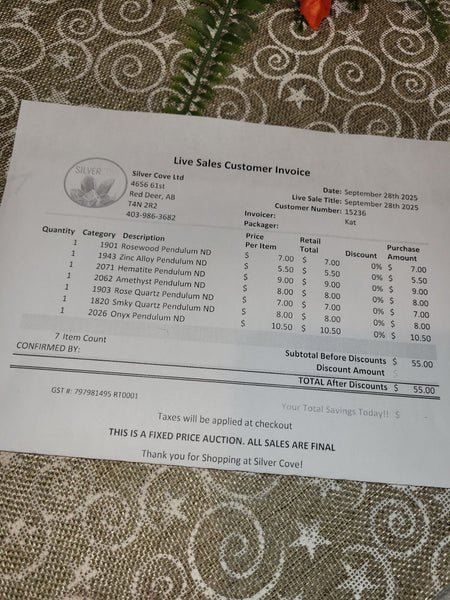 This is your invoice for the date listed above, and we hope you are as excited to get your items as we are! A photo of you invoice and your item(s) are included in this listing for you to review.
