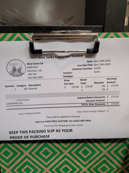 This is your invoice for the date listed above, and we hope you are as excited to get your items as we are! A photo of you invoice and your item(s) are included in this listing for you to review.