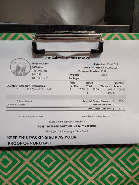 This is your invoice for the date listed above, and we hope you are as excited to get your items as we are! A photo of you invoice and your item(s) are included in this listing for you to review.