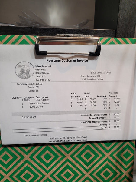 The total is already discounted with any sales you received, and you invoice is ready for check out. All you need to do is add it to your cart, along with any other items you would like to purchase and we will get your treasures on the way!