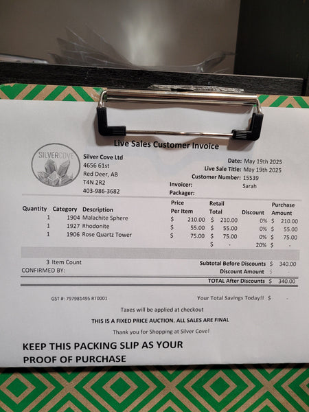 This is your invoice for the date listed above, and we hope you are as excited to get your items as we are! A photo of you invoice and your item(s) are included in this listing for you to review.
