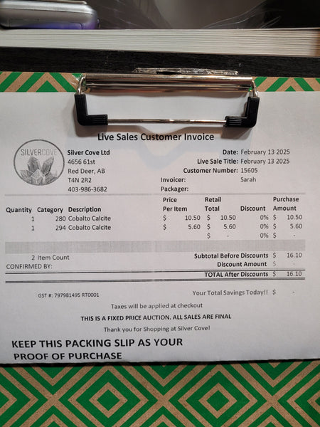 This is your invoice for the date listed above, and we hope you are as excited to get your items as we are! A photo of you invoice and your item(s) are included in this listing for you to review.