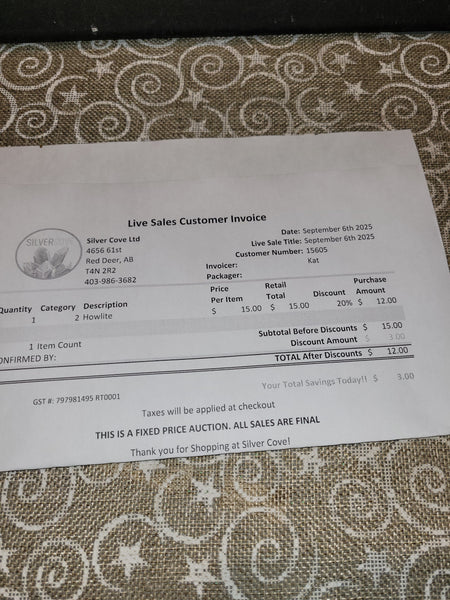 The total is already discounted with any sales you received, and you invoice is ready for check out. All you need to do is add it to your cart, along with any other items you would like to purchase and we will get your treasures on the way!
