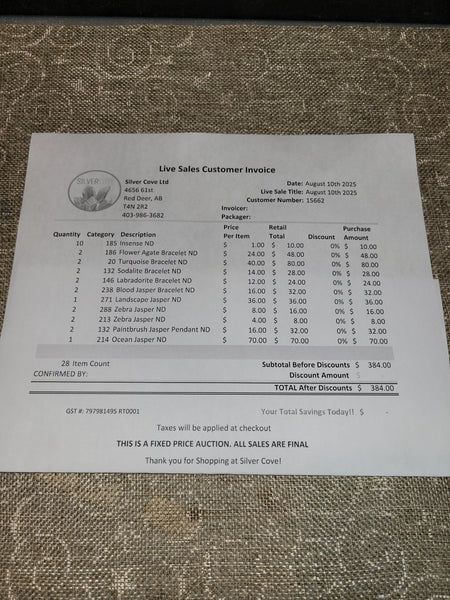 The total is already discounted with any sales you received, and you invoice is ready for check out. All you need to do is add it to your cart, along with any other items you would like to purchase and we will get your treasures on the way!