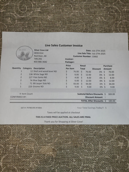 This is your invoice for the date listed above, and we hope you are as excited to get your items as we are! A photo of you invoice and your item(s) are included in this listing for you to review.