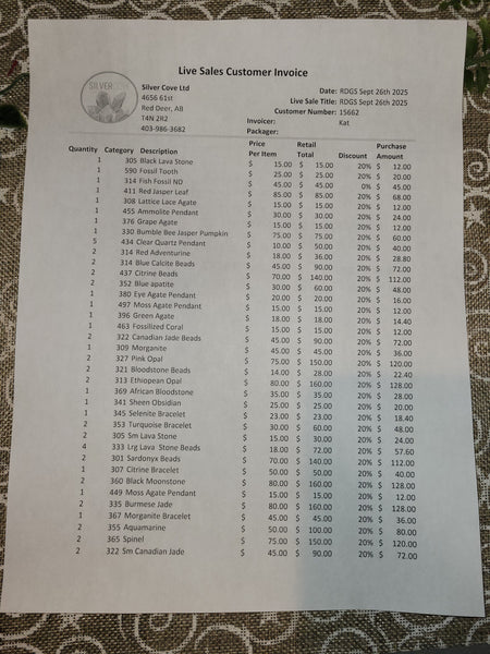 The total is already discounted with any sales you received, and you invoice is ready for check out. All you need to do is add it to your cart, along with any other items you would like to purchase and we will get your treasures on the way!