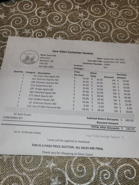 The total is already discounted with any sales you received, and you invoice is ready for check out. All you need to do is add it to your cart, along with any other items you would like to purchase and we will get your treasures on the way!