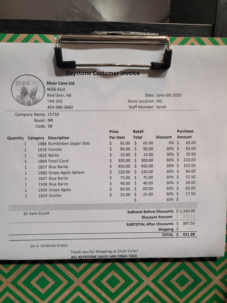 The total is already discounted with any sales you received, and you invoice is ready for check out. All you need to do is add it to your cart, along with any other items you would like to purchase and we will get your treasures on the way!