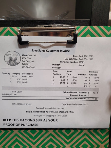 This is your invoice for the date listed above, and we hope you are as excited to get your items as we are! A photo of you invoice and your item(s) are included in this listing for you to review.