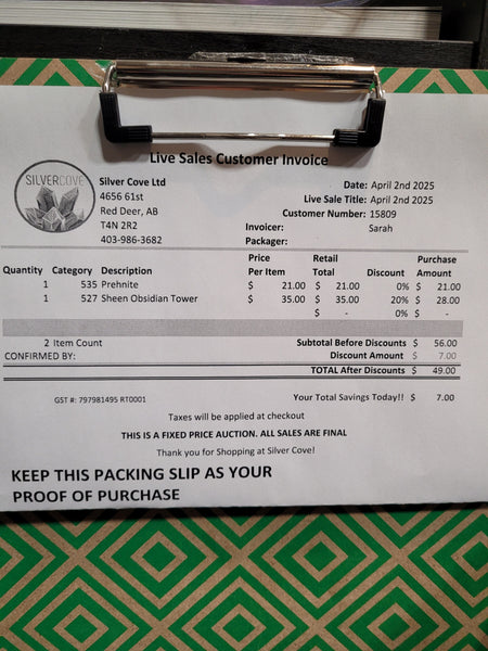 This is your invoice for the date listed above, and we hope you are as excited to get your items as we are! A photo of you invoice and your item(s) are included in this listing for you to review.