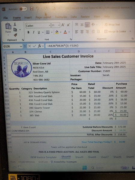 The total is already discounted with any sales you received, and you invoice is ready for check out. All you need to do is add it to your cart, along with any other items you would like to purchase and we will get your treasures on the way!