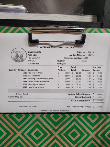 The total is already discounted with any sales you received, and you invoice is ready for check out. All you need to do is add it to your cart, along with any other items you would like to purchase and we will get your treasures on the way!