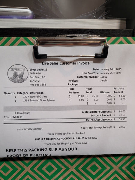 This is your invoice for the date listed above, and we hope you are as excited to get your items as we are! A photo of you invoice and your item(s) are included in this listing for you to review.