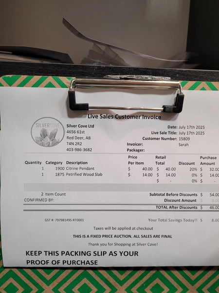 This is your invoice for the date listed above, and we hope you are as excited to get your items as we are! A photo of you invoice and your item(s) are included in this listing for you to review.