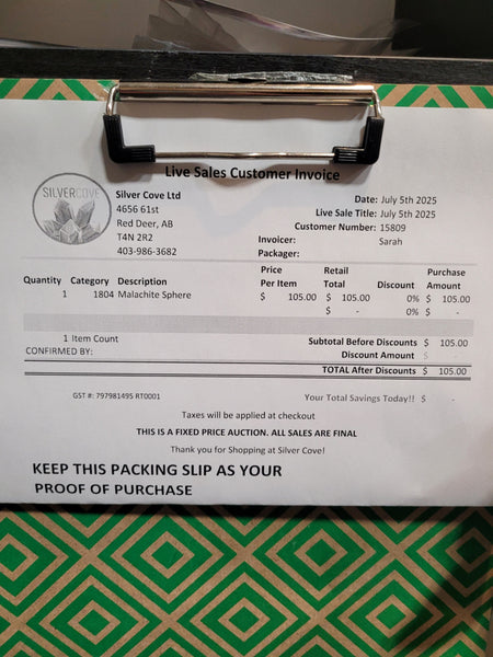This is your invoice for the date listed above, and we hope you are as excited to get your items as we are! A photo of you invoice and your item(s) are included in this listing for you to review.