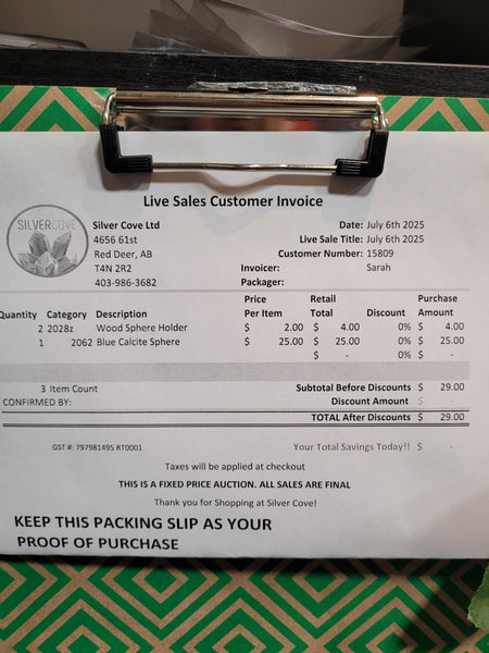 This is your invoice for the date listed above, and we hope you are as excited to get your items as we are! A photo of you invoice and your item(s) are included in this listing for you to review.