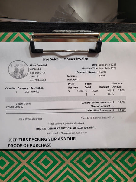 This is your invoice for the date listed above, and we hope you are as excited to get your items as we are! A photo of you invoice and your item(s) are included in this listing for you to review.