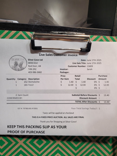 This is your invoice for the date listed above, and we hope you are as excited to get your items as we are! A photo of you invoice and your item(s) are included in this listing for you to review.
