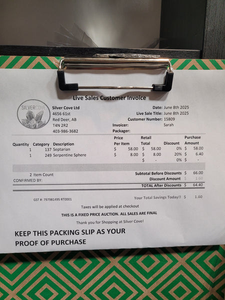 This is your invoice for the date listed above, and we hope you are as excited to get your items as we are! A photo of you invoice and your item(s) are included in this listing for you to review.