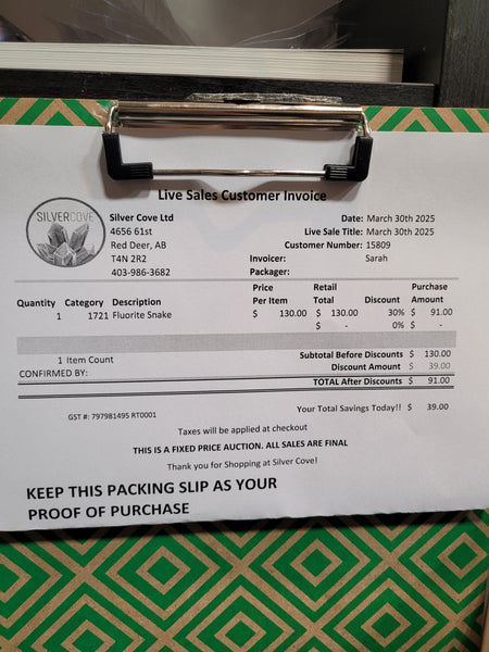 This is your invoice for the date listed above, and we hope you are as excited to get your items as we are! A photo of you invoice and your item(s) are included in this listing for you to review.