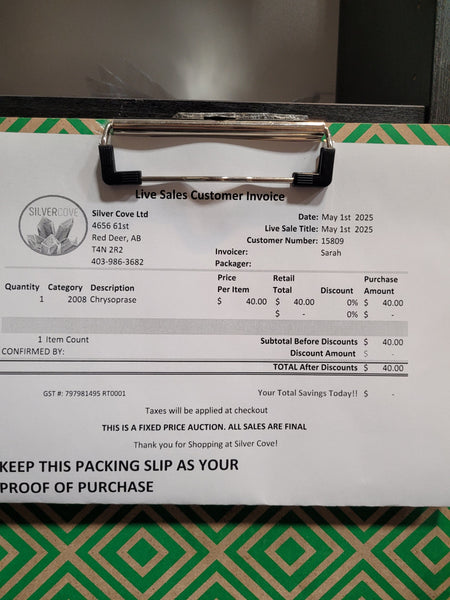 This is your invoice for the date listed above, and we hope you are as excited to get your items as we are! A photo of you invoice and your item(s) are included in this listing for you to review.