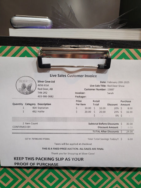 The total is already discounted with any sales you received, and you invoice is ready for check out. All you need to do is add it to your cart, along with any other items you would like to purchase and we will get your treasures on the way!