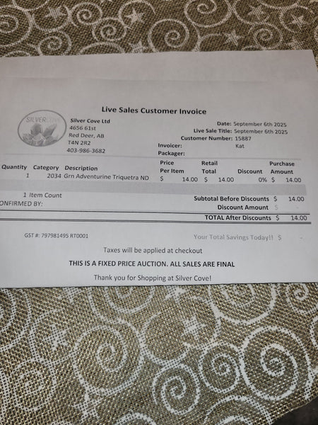 This is your invoice for the date listed above, and we hope you are as excited to get your items as we are! A photo of you invoice and your item(s) are included in this listing for you to review.